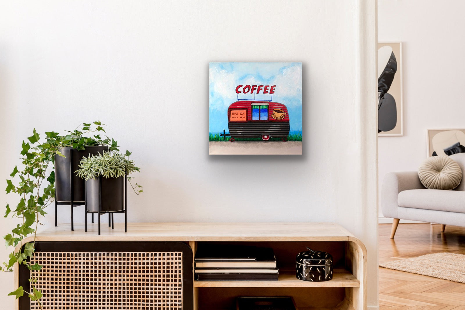 About: I ran across this lovely coffee van in Forrest, Illinois. The business is called Coffee Steamer, and it's bustling whenever I pass by (I am usually on a long trip from state to state, which takes me through Forrest). This piece is ready to hang and doesn't require a frame, as all four sides have been painted.