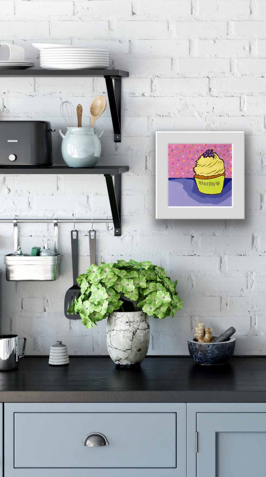 About: A yellow cupcake with sprinkles Perfect to add fun to your kitchen!