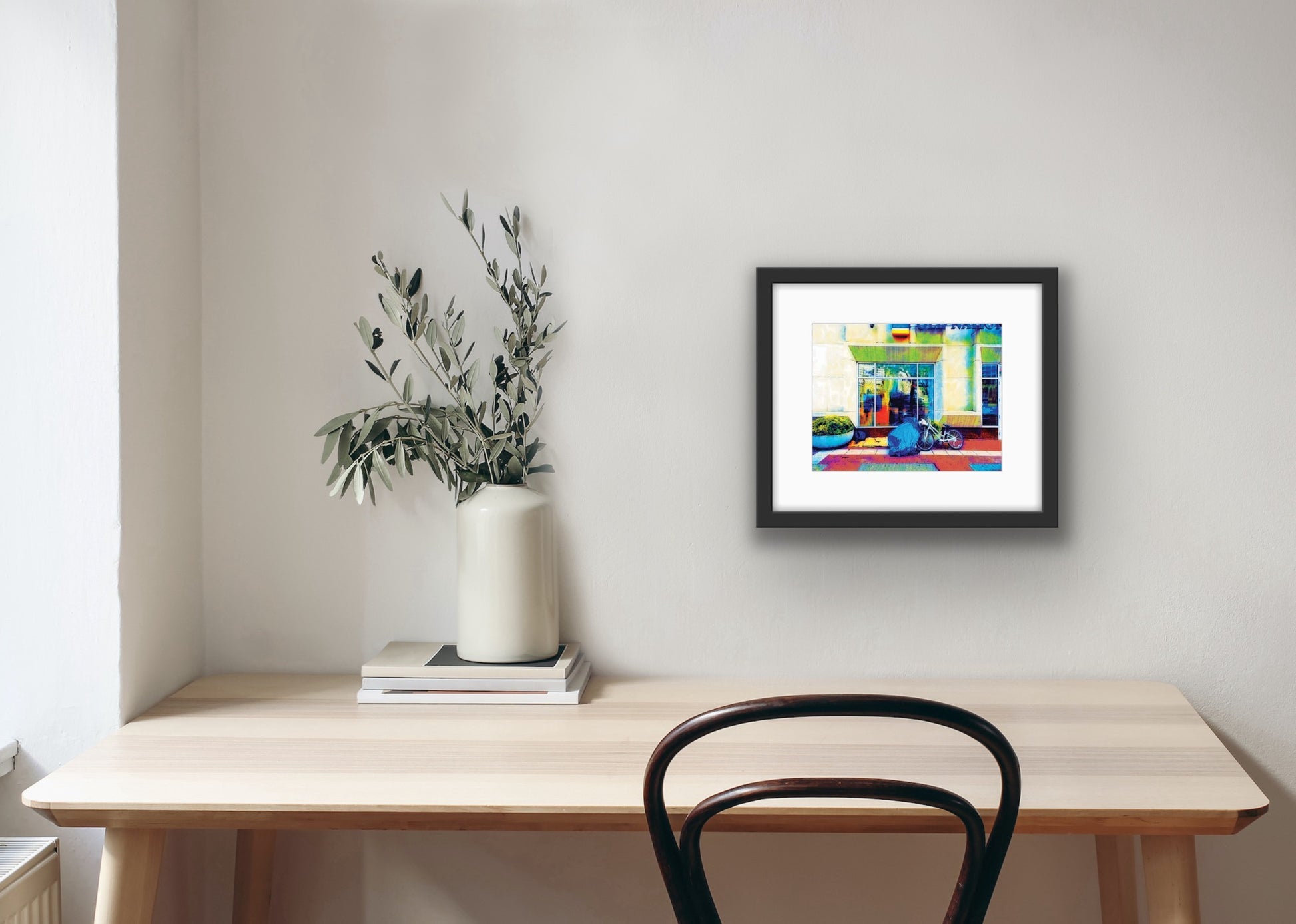 Size: 14" wide x 11" tall. Unframed. The Matt is archival and will fit into your 20" x 16" frame.