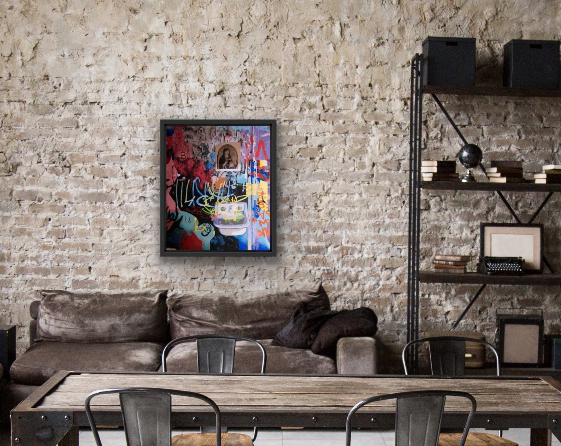 This piece combines Norwegian graffiti I found in rural Norway and a jail cell in Noblesville, Indiana. The jail was in use until 1977. Currently, it is a sheriff's museum. It briefly held the infamous murderer, Charles Manson. This is the second painting in the series.