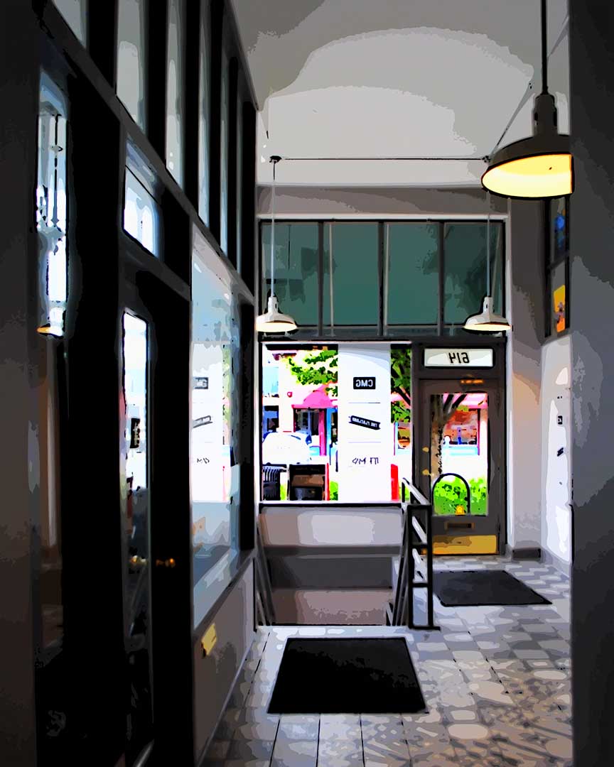 About: Interior of a building which includes a stamp store, on Massachusetts Ave, in Indianapolis, Indiana. Currently, this is digital art, but one day, I may create a painting based on this piece.