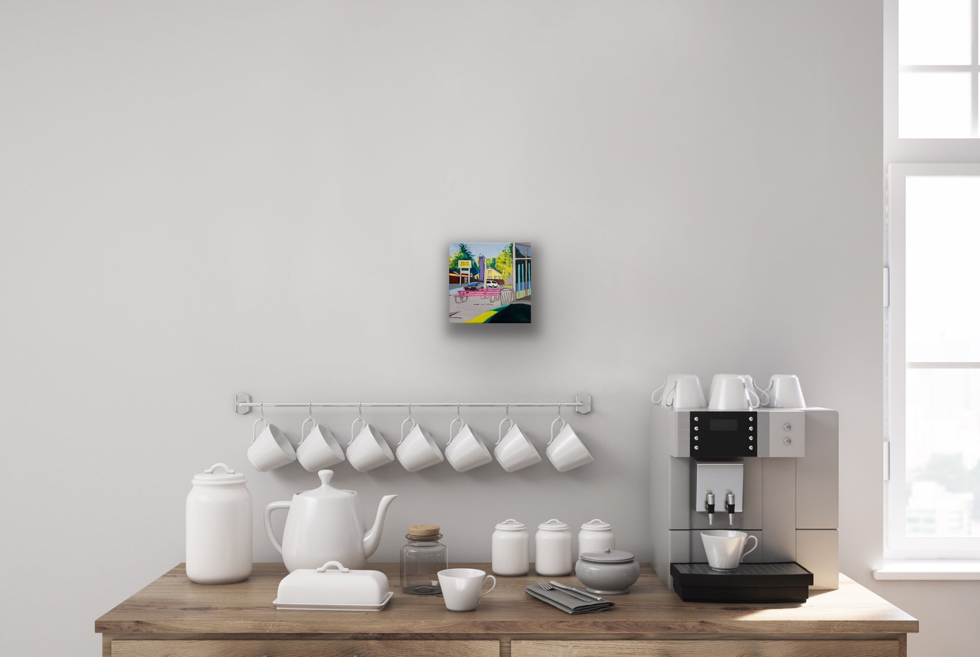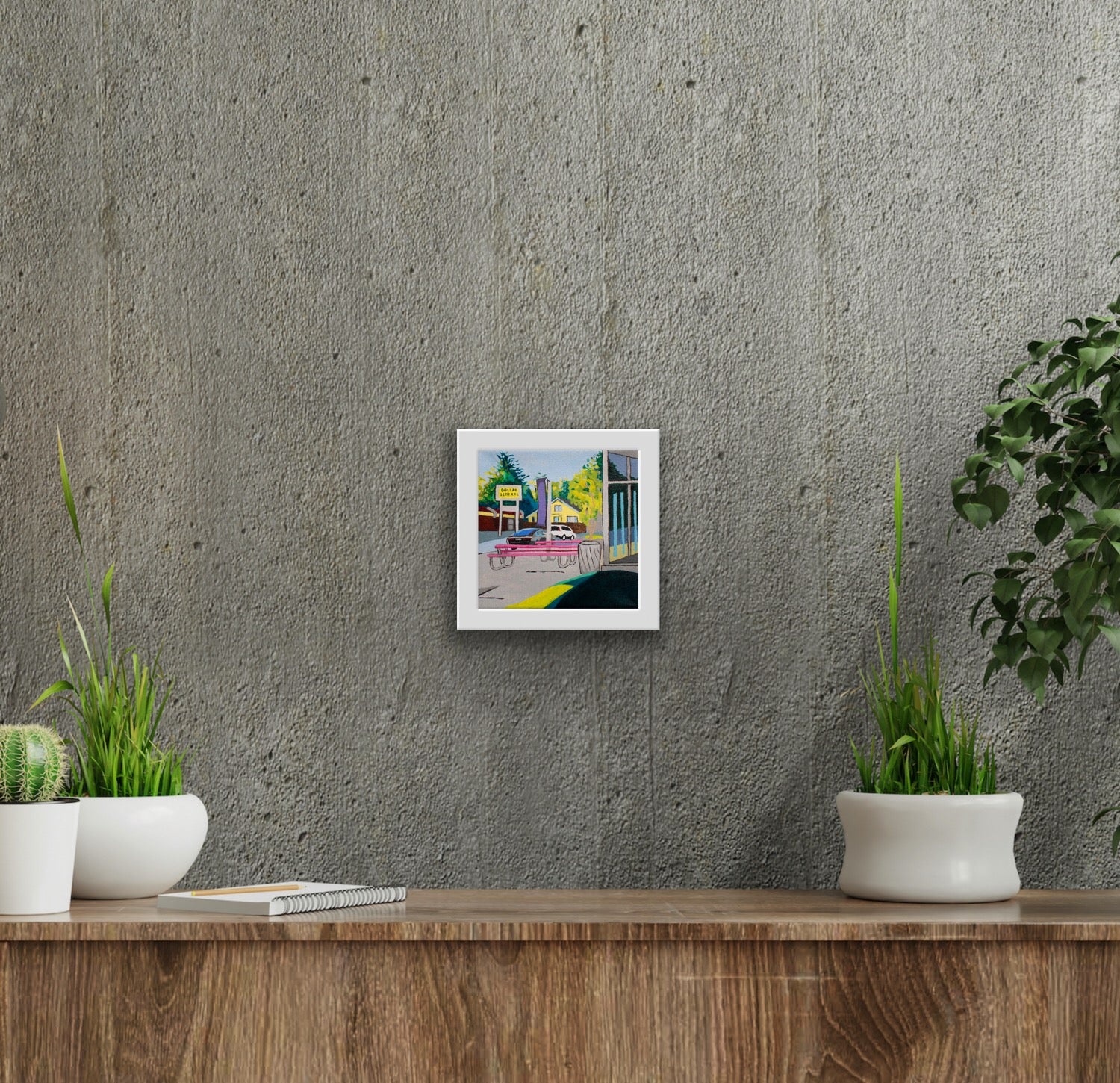 Size: 6" x 6" x 1.5" Unframed. Ready to hang. A white frame can be added for an additional cost. Details below.