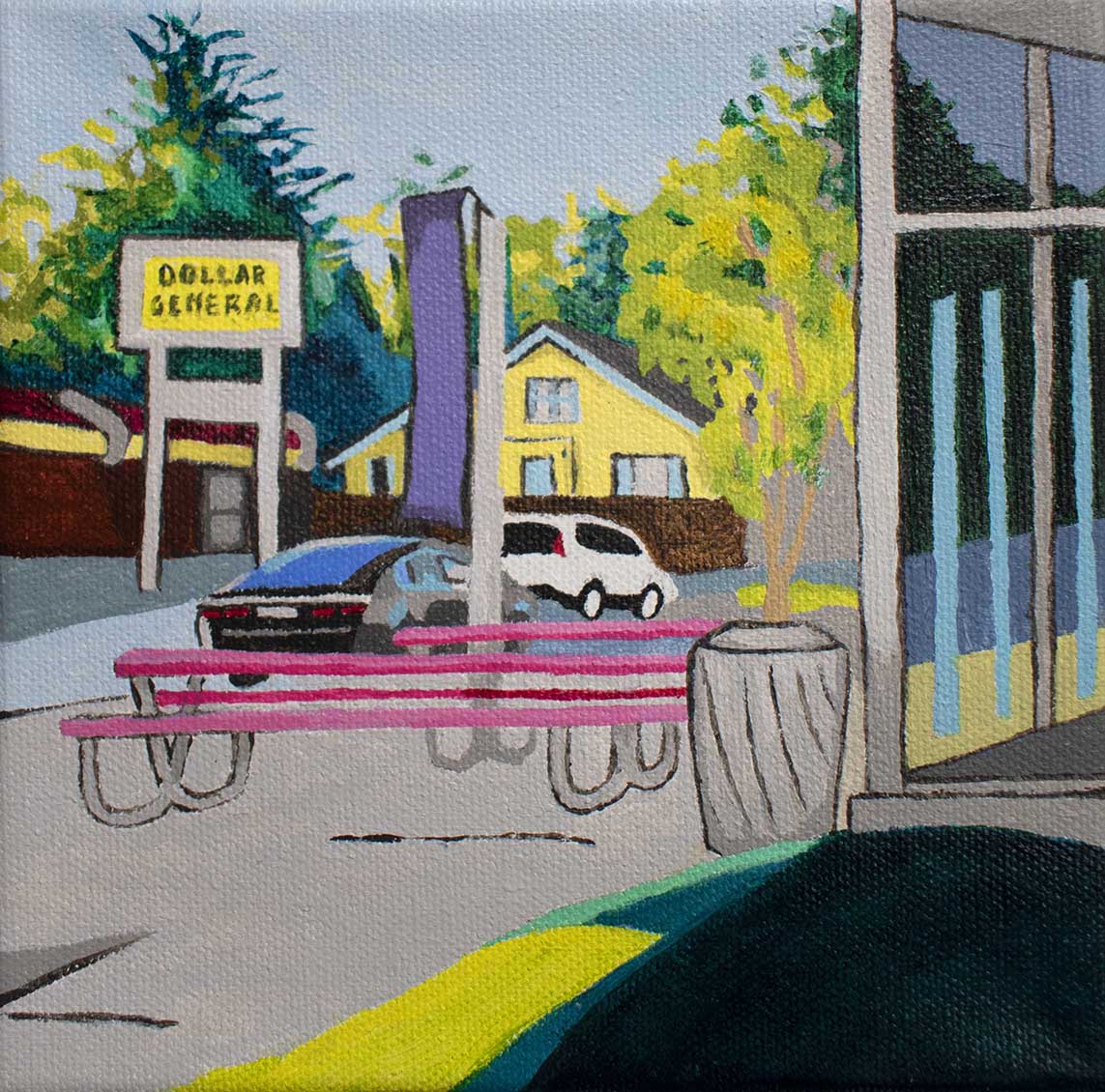 Part of a larger painting. This is a park in Indianapolis near 38th Street. Funny how no matter where you travel in the state of Indiana, a Dollar General store seems to be on every corner!