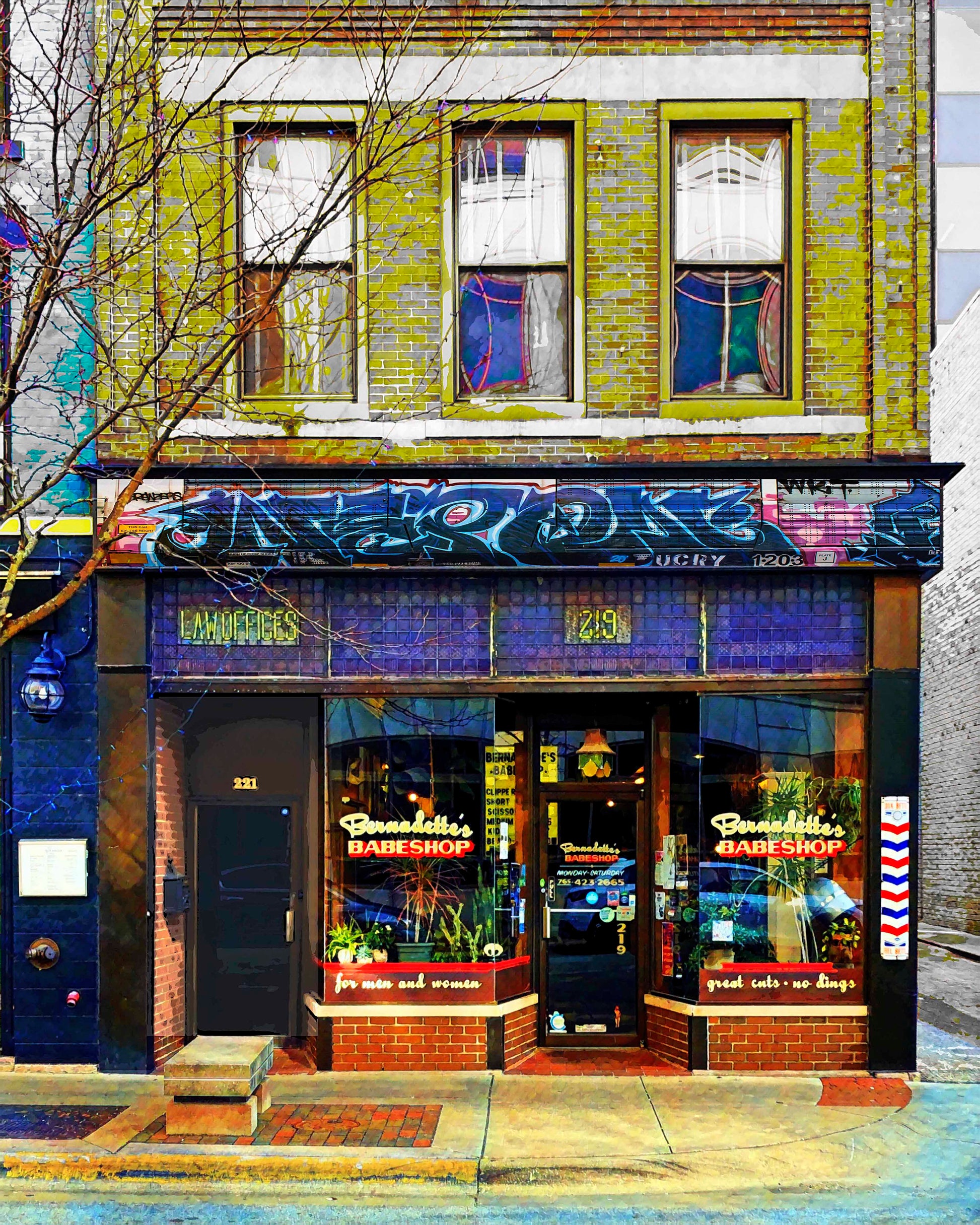 About: This piece was a slow cooker. When I first saw this shop, I knew I wanted to create a piece of art about it, but I was uncertain if it would be a painting or digital art. I made a handful of trips to photo the building to get the best lighting and no cars in front of it (everyone ignores the yellow curb!). After fooling around with the image and trying to envision it as a painting, I came up with this idea.